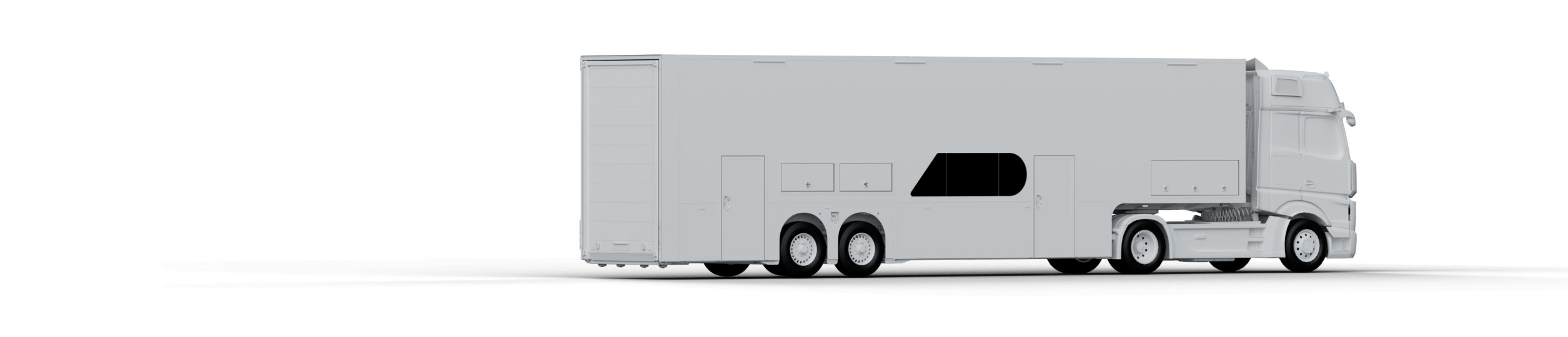 Dankzij het Double Deck ontwerp kunnen er tot 3 raceauto’s vervoerd worden, met daarnaast ruimte voor een kantoor en werkplaats op de onderste etage.
